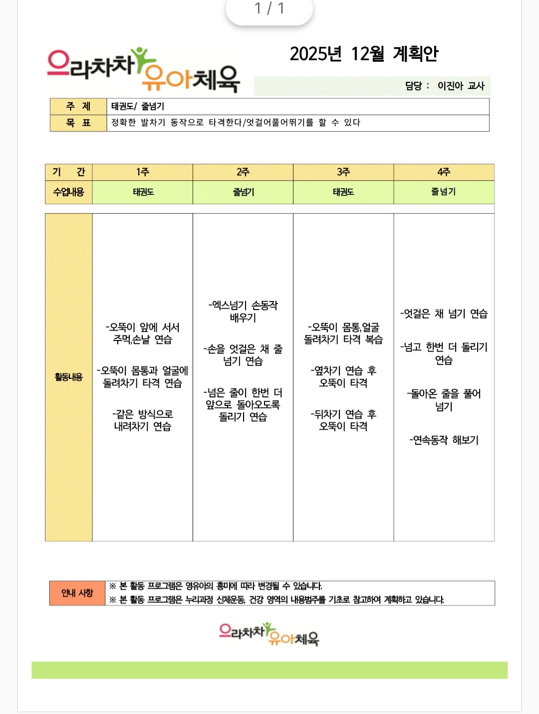 주간교육계획안