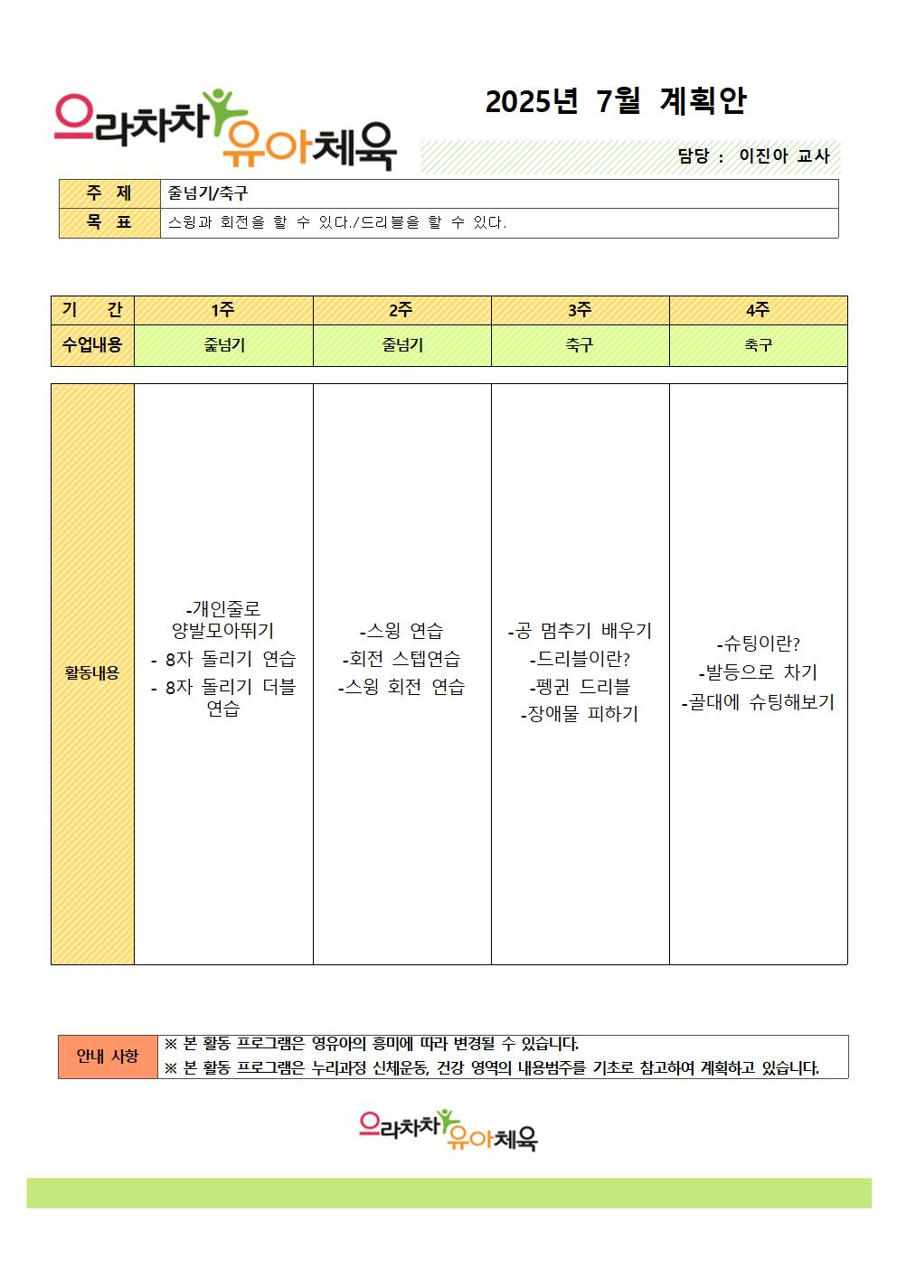 7월 체육 특성화 계획안