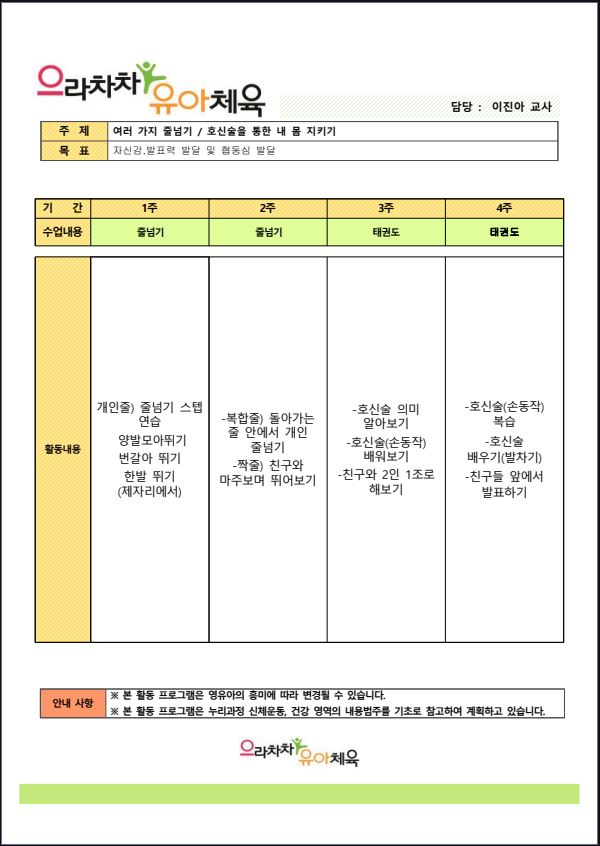 4월 체육 특성화 계획안