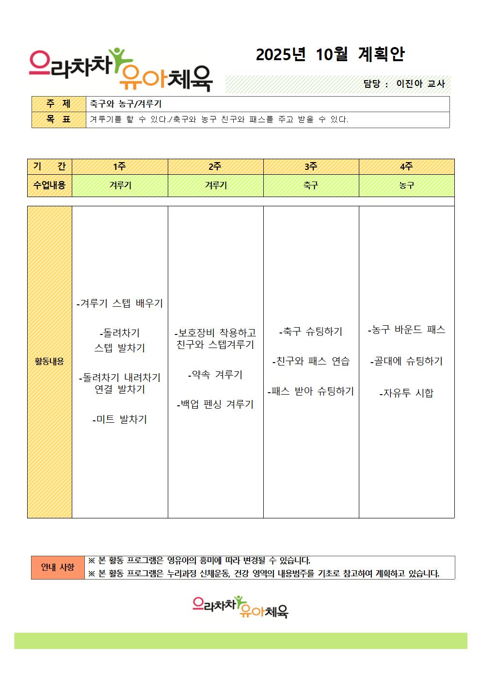 | 제목 | 10월 체육 특성화 계획안 | ||